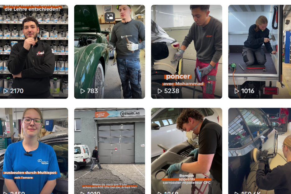 Les apprentis de nos entreprises membres sont également sous les feux des projecteurs ! C'est avec fierté qu'ils attirent l'attention des professionnels potentiels de demain sur les métiers d'apprentissage et les renvoient directement vers notre site web dédié aux jeunes, métiersdelacarrosserie.ch, pour plus d'informations. Vous trouverez également des exemples ici, sur nos réseaux sociaux.